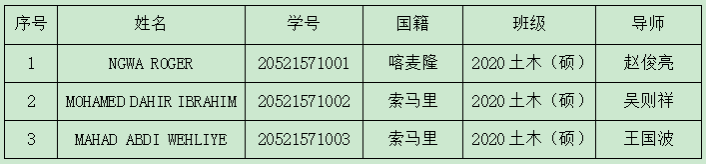 现有2020级土木水利三名国际研究生,按照培养方案规定,已于2025年7月达到最长学习年限,未如期完成培养环节要求及毕业论文答辩。根据《永利集团研究生学籍管理规定》(温大行政发〔2022〕123号)第七章第三十一条规定:“在规定期限(含批准延期)内未修完培养计划规定课程,或未完成学业的,应予退学”。学生信息如下: