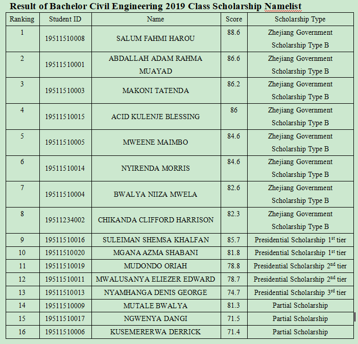 Through students’ confirmation and application, the students who are recommended as the candidates of the Zhejiang Government Scholarship, Presidential and Partial scholarship as below form.