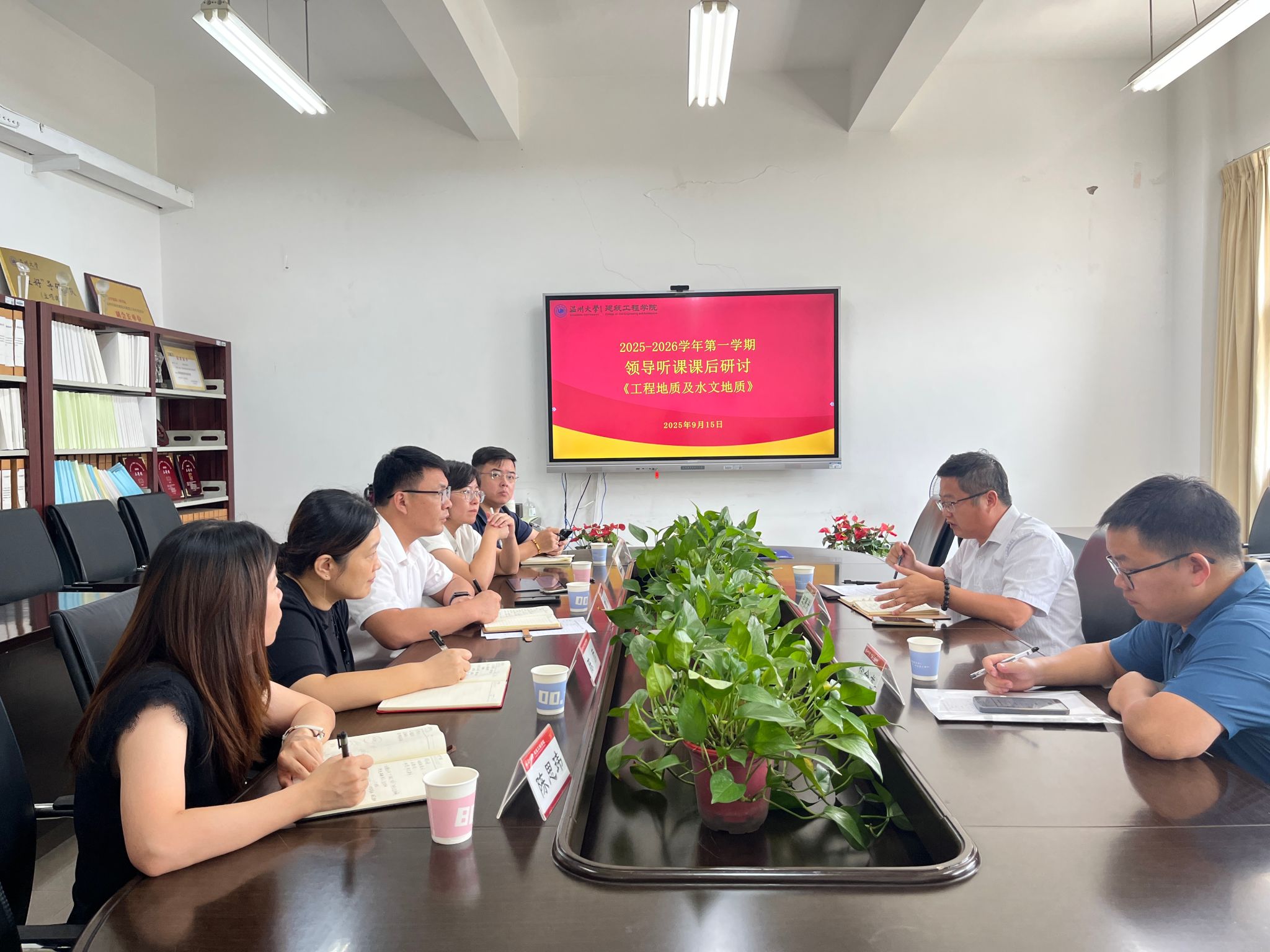 听课过程中,王展光副校长深入王一鸣老师主讲的《工程地质及水文地质》课堂,认真观摩教学实施情况。在随后的座谈中,王校长首先对王一鸣老师的课堂教学表现予以充分肯定。他指出,王老师善于结合个人专业实践经历,在第一堂课即树立起专业权威,课堂案例生动贴切、阐释清晰,体现出教师扎实的专业素养和充分的教学准备。