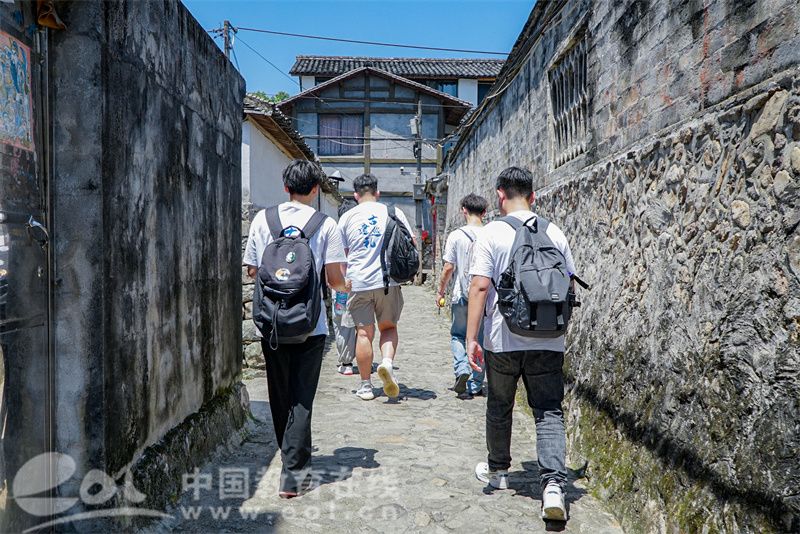实践队学生行走在芙蓉古村