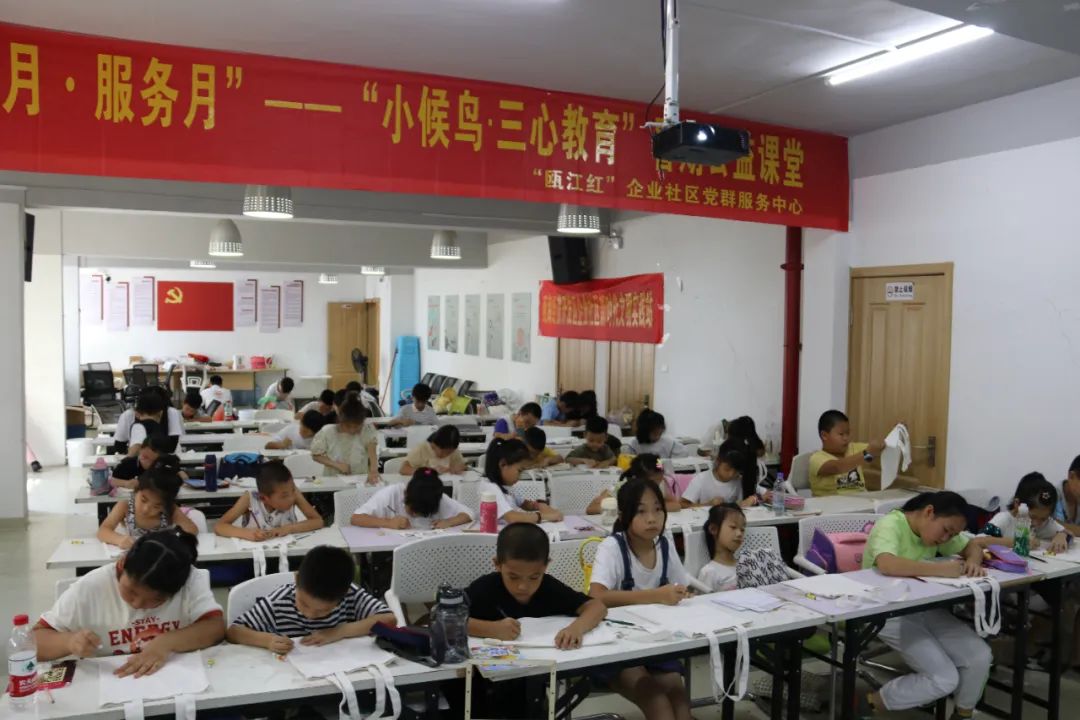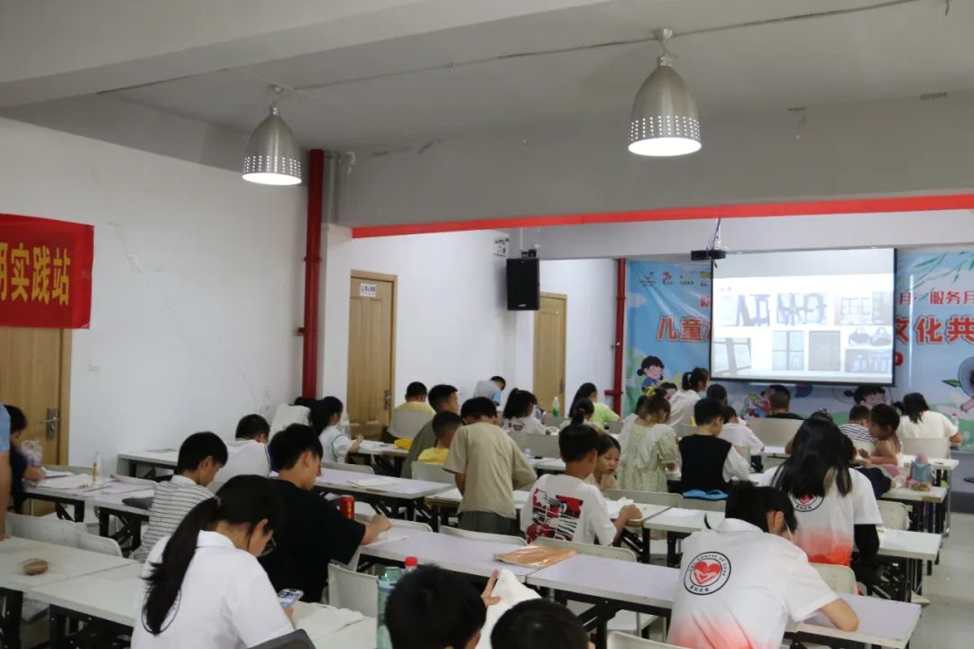 蓝夹缬,又称温州蓝夹缬,为中国传统印染四缬之一。为了传承并发扬温州民俗文化,本期“小候鸟”暑期公益课堂开设蓝夹缬体验及技艺培训系列课程,让这个小众“非遗”产品“火”起来。7月14日下午,企业社区联合永利集团“爱的历程”暑期实践队开展绘“夹缬”之蓝,品创造之美活动,共40名“小候鸟”参加。