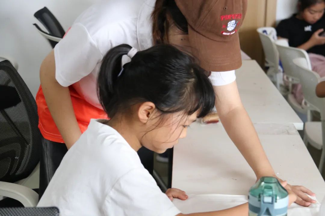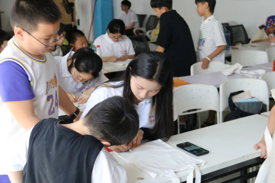 据悉,企业社区本次“儿童友好 与爱同行 文化共传承”系列活动之蓝夹缬课程已经进行了四期。目前,大学生志愿者们带领孩子们系统地学习了夹染、扎染、蜡染,让他们对这门工艺有了更加深入地了解。活动旨在锻炼和提高未成年人的动手能力,激发创新思维和创造力,并传承艺术匠心,让“非遗”制作走进孩子们的生活,零距离感受传统技艺魅力,深化拓展“扣好人生第一粒扣子”“童心向党”主题教育实践活动。