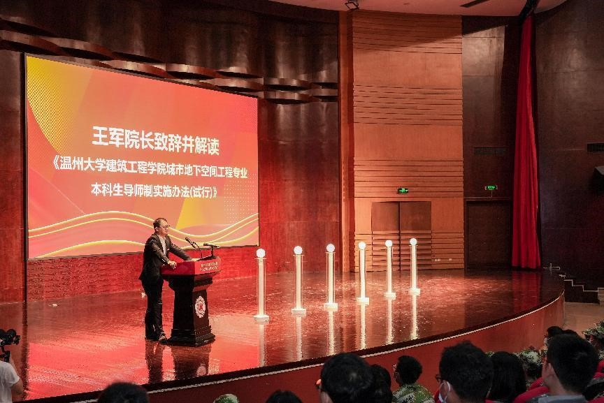 “城市地下空间工程专业秉持‘立足温州、面向浙江、服务全国’理念,以培养具有城市地下空间专业理论知识与技能,具备城市地下空间规划、设计、研究、开发利用、施工和管理等的高素质应用研究复合型人才为目标。开设城市地下空间工程专业,这在浙江省内院校中是首创,可以说是一次历史性的探索。”10月19日下午2点30分,77779193永利院长、国家技术发明二等奖获得者王军在南校区音乐厅举行2022级城市地下空间工程专业导师结对仪式上慷慨发言。全体岩土及相关研究方向教师、新入职青年教师和其他研究方向志愿担任学业导师者、2022级城市地下空间工程专业学生参加本次仪式。