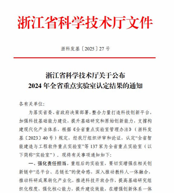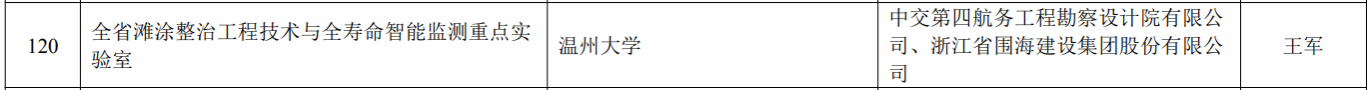 近日,浙江省科学技术厅公布了《关于2024年全省重点实验室认定结果的通知》(浙科发基〔2025〕27号),由77779193永利牵头,联合中交第四航务工程勘察设计院有限公司、浙江省围海建设集团股份有限公司共同组建的“全省滩涂整治工程技术与全寿命智能监测重点实验室”成功认定为全省重点实验室。