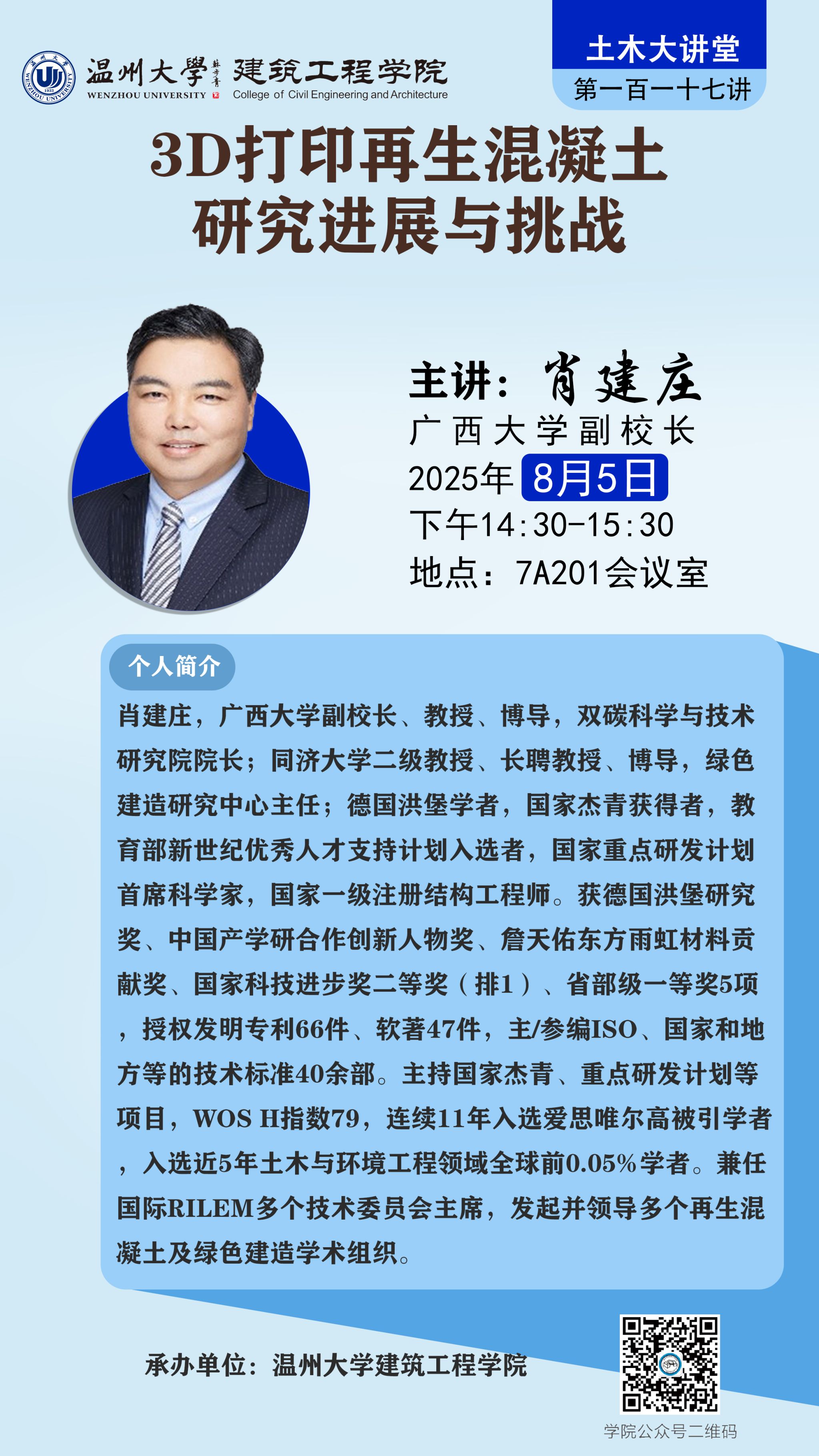 学术讲座预告:3D打印再生混凝土研究进展与挑战