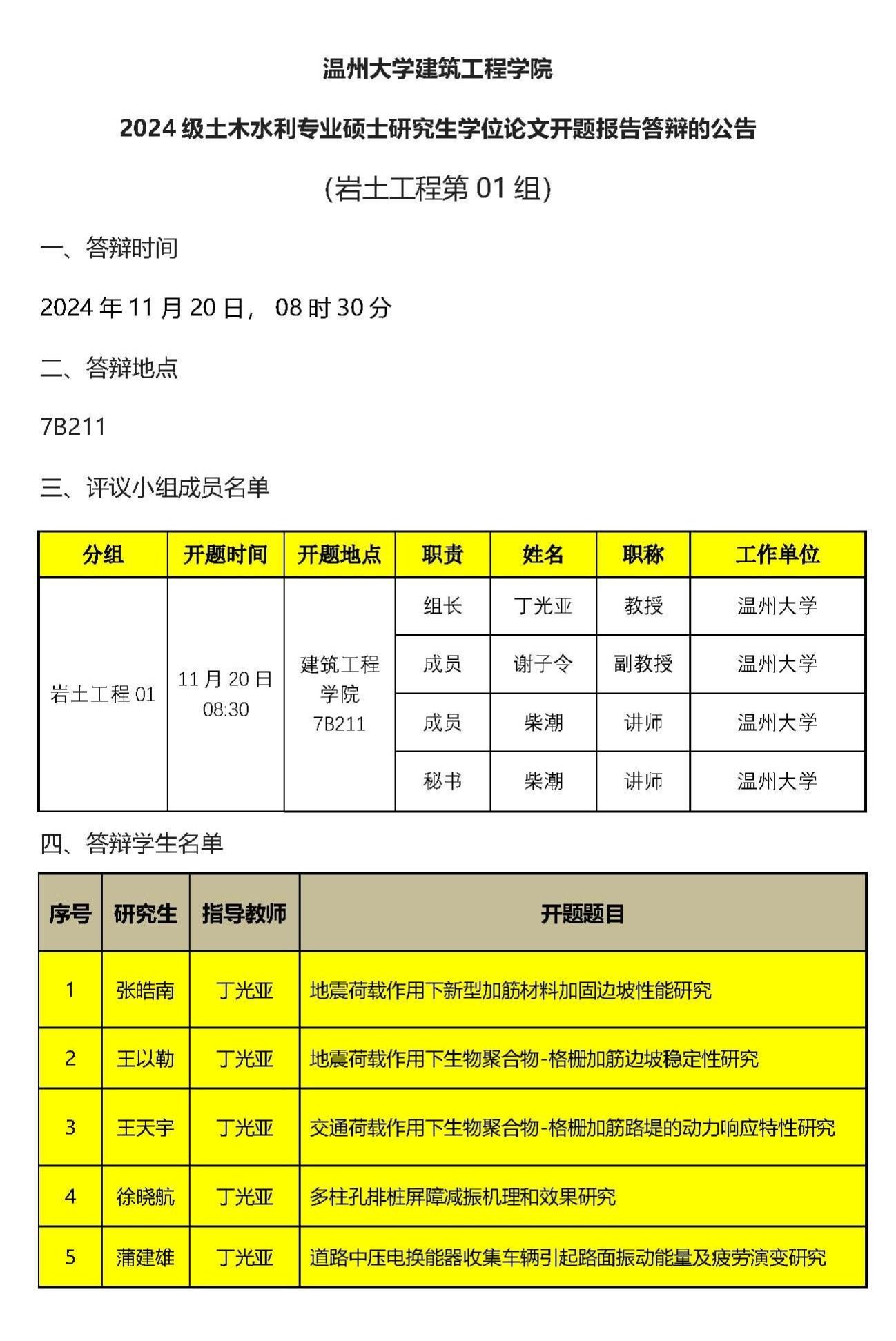 2023级专硕研究生学位论文开题报告答辩公示(二)