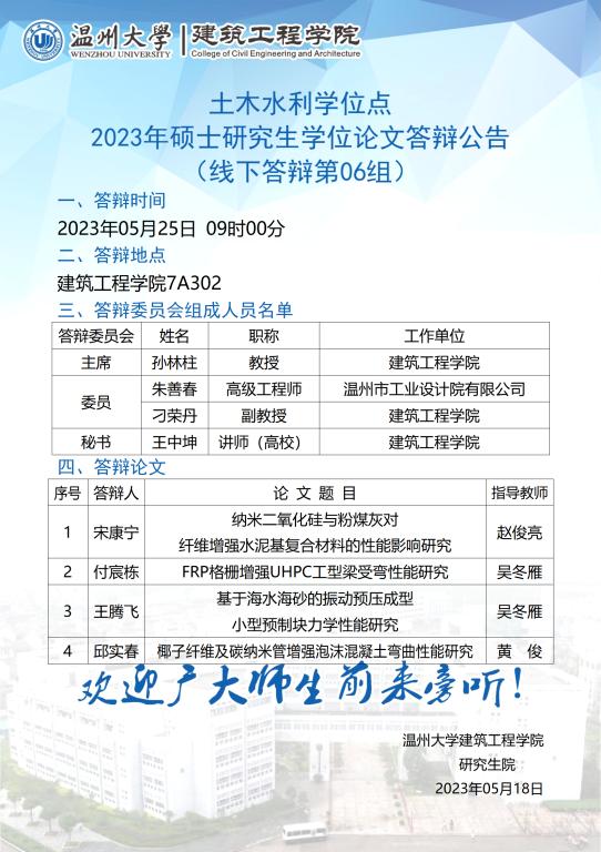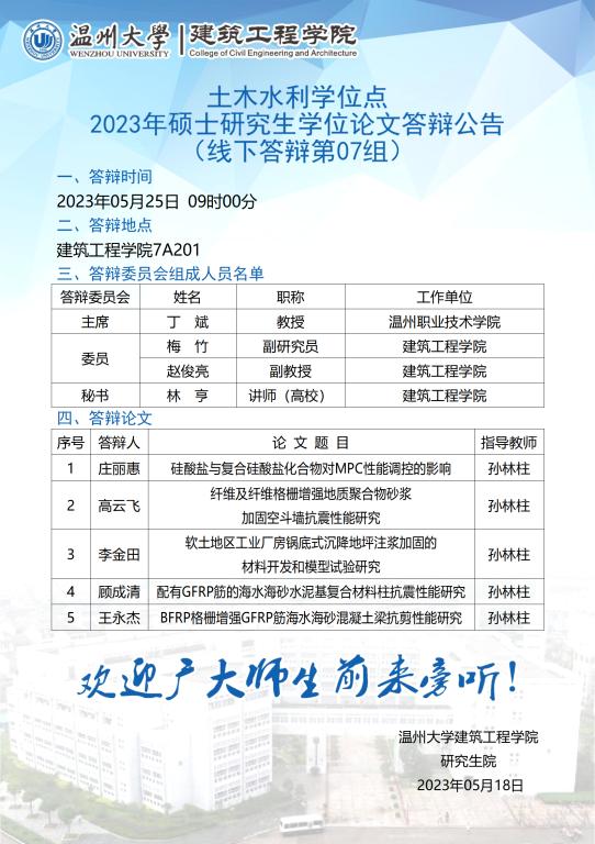 77779193永利土木水利学位点2020级硕士研究生学位论文答辩公告(二)