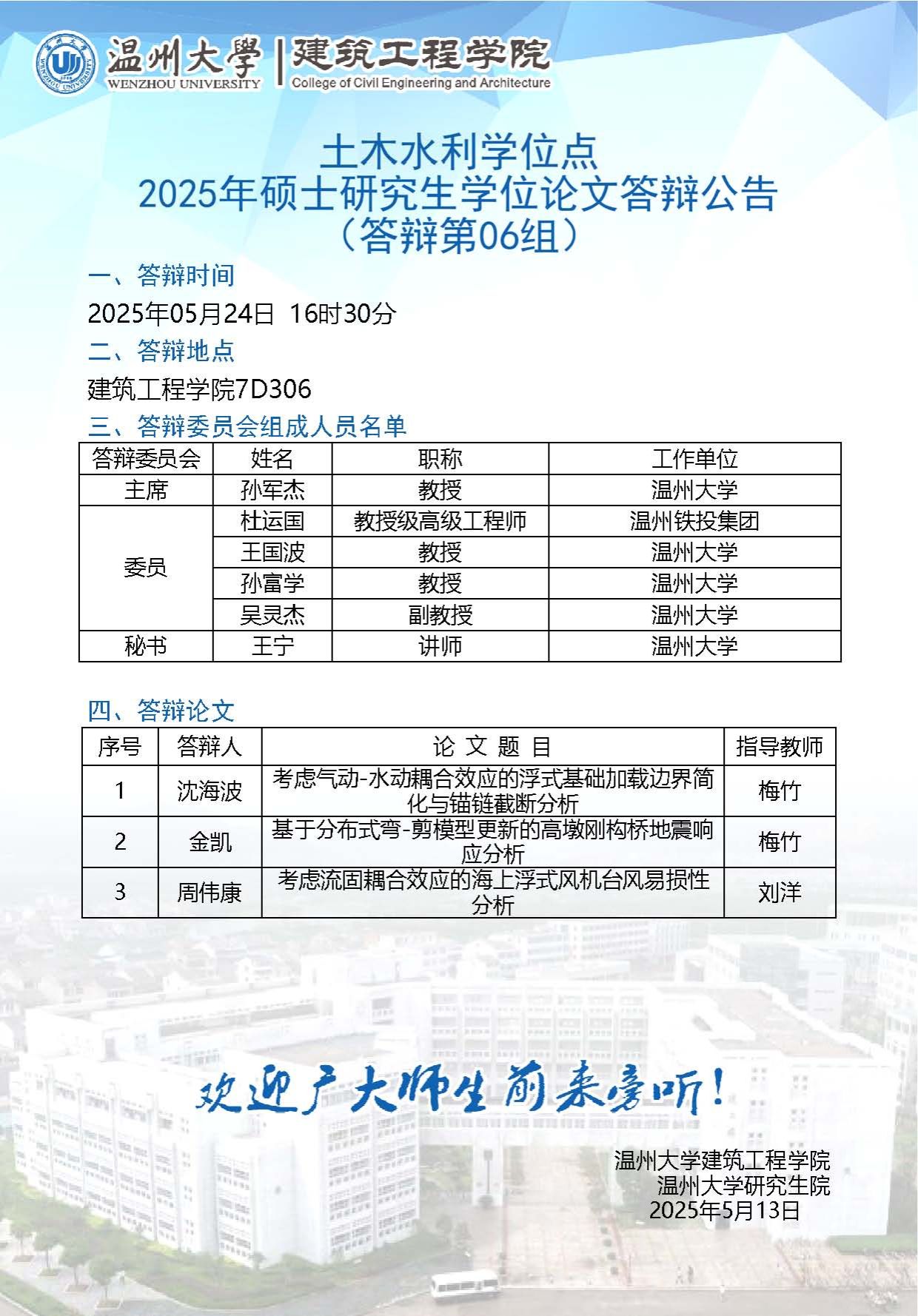 77779193永利2025届(六月)硕士研究生学位论文答辩公告(一)