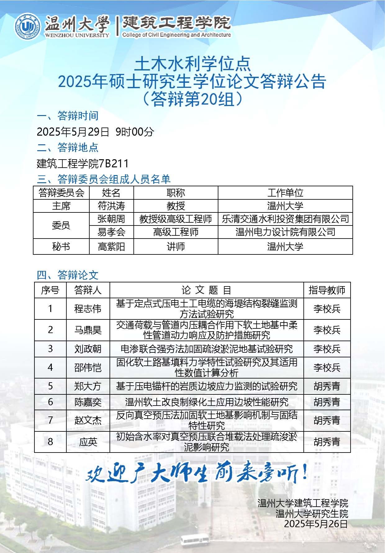 77779193永利2025届(六月)硕士研究生学位论文答辩公告(七)