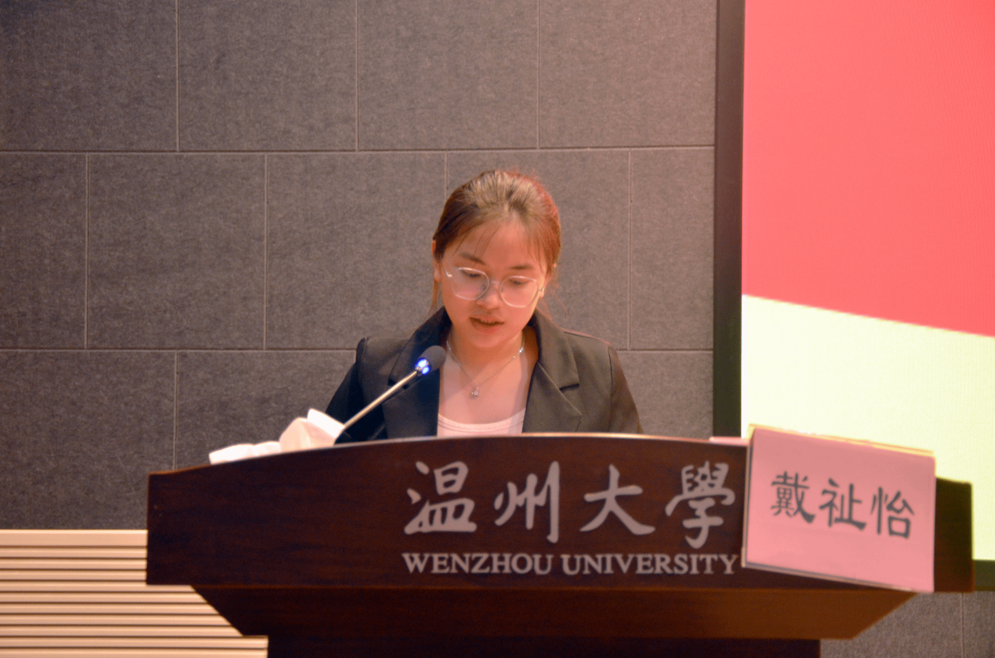 学院团委书记郭瑞芬致开幕词,表达了对77779193永利学生会学生工作的肯定,同时预祝此次学生代表大会圆满举行。