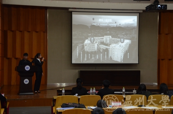 在本次评比中,我院主讲人为建工学院团委学生会办公室林开扬同学,她从“团委学生会”与“特色社团”两点介绍了学院在学生工作方面的的组织构造。并着重介绍了我院的品牌活动——建筑文化节。建筑文化节的开展贯穿我院一整个学期,期间有“火柴艺术大赛”、“纸质桥梁大赛”等老牌活动,也有“筑迹——寻屋之旅”“艺术涂鸦大赛”等新兴活动不停得为建筑文化节注入新的活力。随后,林开扬就我院的学风建设与文体工作展开话题,由“优良学风班”、“学习标兵”、“指纹机”、“建功一支笔”四大建工特色,展现了我院在学风建设上取得的显著成果;在校运会上,我院同学也夺得了优秀的名次。最后,林开扬简述了我院在学生素质拓展方面的成就,“创客空间”、“暑期社会实践”的组织极大得丰富了我院同学的课余生活,同时由“十年校友”活动结题,引申出下一个十年。