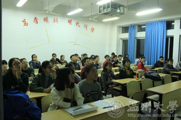 2016年11月15日晚,建工学院06届毕业生南叶在建工楼7D307给大一建筑班新生带来了一场关于职业生涯的讲座。出席本次活动的有永利集团就业处朱丽莉老师以及建工学院大一建筑班的学生。