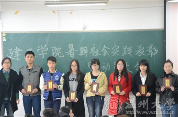 首先,团委副书记项佳玲针对此次大会进行了简短的开场之后,便进行颁奖仪式。潘老师为优秀团队,先进个人,优秀通讯员颁发了荣誉证书。在颁奖仪式结束后,建工学院各支优秀实践队的代表上台向大家进行成果展示。演讲者以各自团队的特色作为魅力以招募新成员。每支实践队都独具特色,比如“爱的历程”实践队的主题是永恒不变的公益,而“古建巡礼”实践队则是与建筑专业相关。
