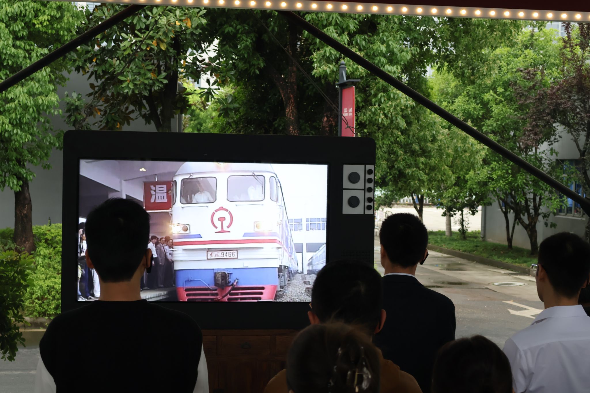 “印象金温”铁路文化基地以习近平总书记在浙江工作期间调研考察过的5114次旅客列车为原型,巧妙地将停运的铁路水泥专用线和“退役”的列车改造提升。学生代表依次参观“时光月台”和“感恩奋进号”等核心展区。参观期间,大家认真聆听专业讲解,仔细观看珍贵的历史照片与详实的文献资料,深入了解金温铁路从规划建设到运营发展的艰辛历程与辉煌成就。金温铁路不仅是一条交通动脉,更承载着温州人敢为人先、艰苦创业的精神,其背后的故事让同学们深受触动。