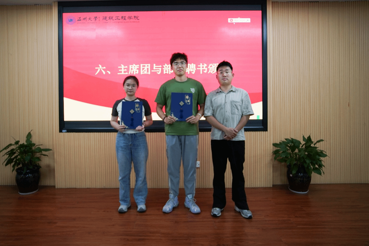 大会对团干培训优秀学员进行表彰,学生会执行主席戴祉怡、研究生会执行主席叶信溢分别为本科生、研究生获奖学员颁奖,肯定他们在培训中展现的学习热情与实践能力。在聘书颁发环节,朱宸希老师先后为团委·学生会主席团及各部门部长颁发聘书,一纸聘书承载着学院的信任与对学生干部的殷切期望。