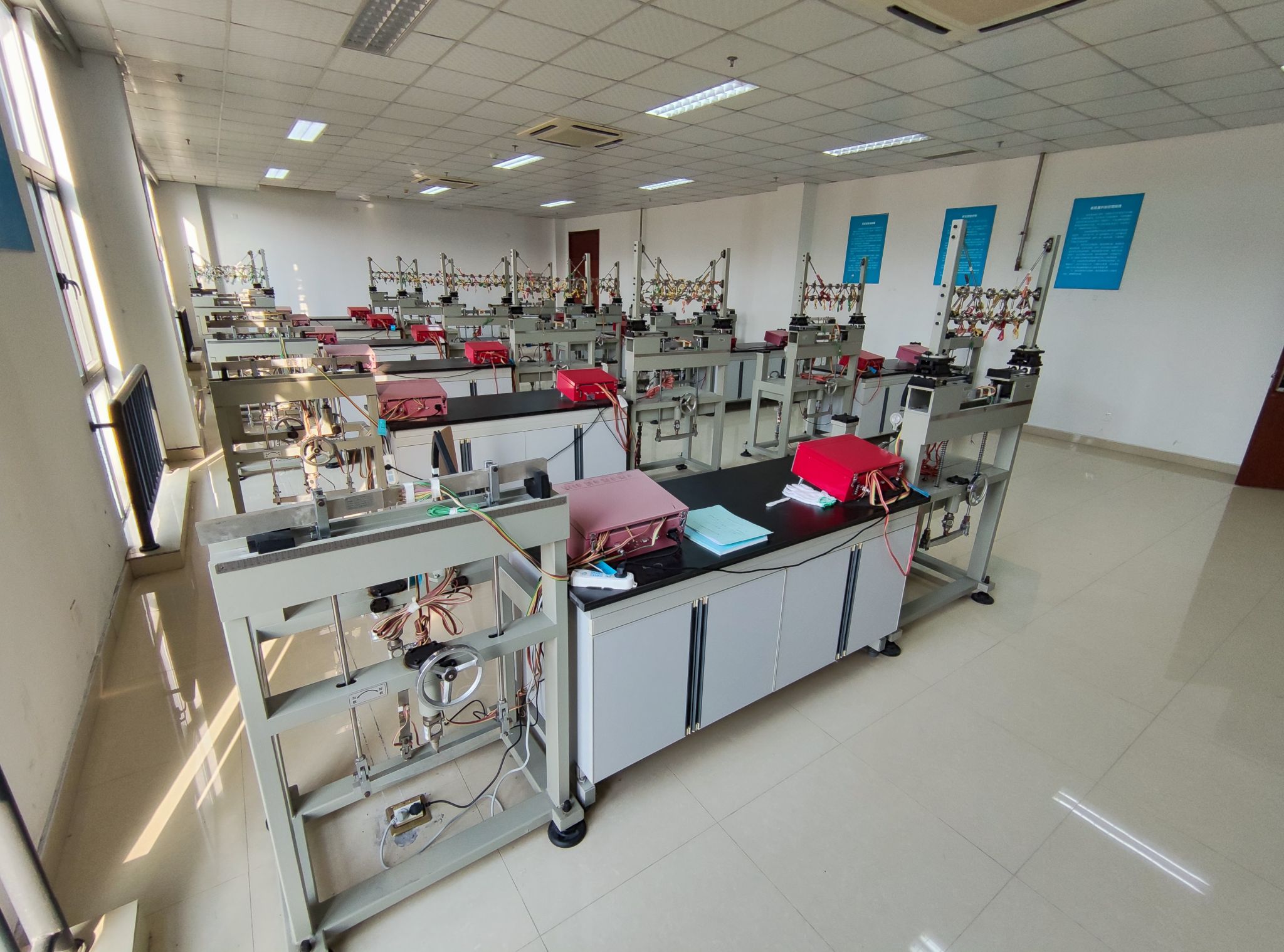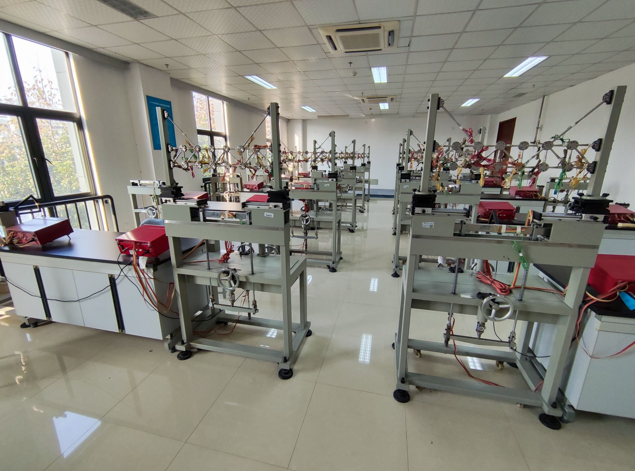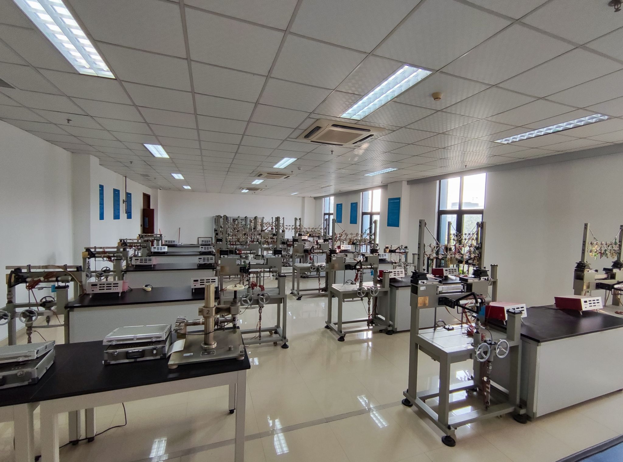 材料力学实验室主要承担土木工程专业、城市地下空间工程专业和建筑学专业《材料力学》、《建筑力学》等相关课程实验教学任务。拥有万能试验机、多功能组合试验台,可承担的主要实验内容有拉伸实验、压缩实验、弹性模量和泊松比的测定、剪切弹性模量的测定和弯曲正应力实验、弯扭组合变形实验,学生可以利用本实验室的设备对一些材料的基本常用力学性能指标进行测定。