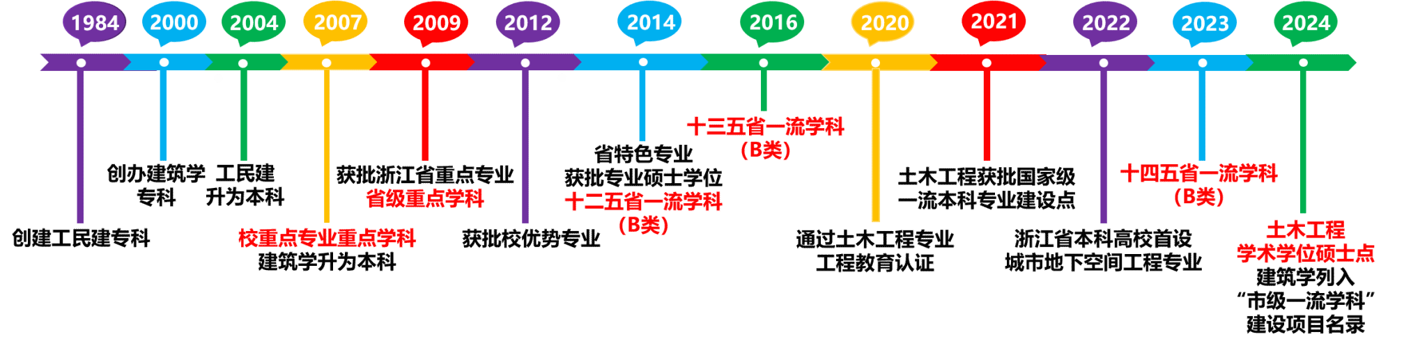 学院设有土木工程、城市地下空间工程、建筑学三个本科专业。土木工程为国家级一流本科专业、中国工程教育认证通过专业,浙江省重点、特色专业,2023年入选十四五浙江省一流学科,拥有土木水利硕士专业学位、土木工程学术学位授权点;建筑学入选“温州市级一流学科”建设名单。学院现有全日制在校生1441人,其中国内本科生1083人,研究生324人,国际留学生34人。